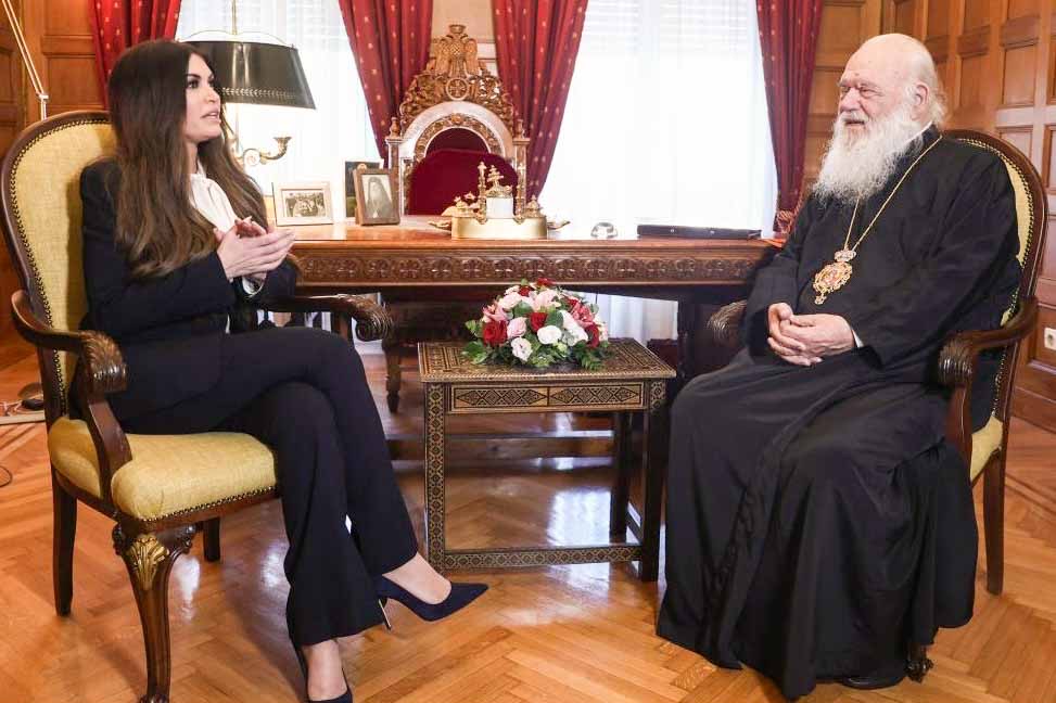Αρχικά την υποδέχτηκε ο πρωτοσύγκελος της Αρχιεπισκοπής Αθηνών Θεοχάρης Βαρνάβας και την οδήγησε στον πρώτο όροφο, στο γραφείο του Αρχιεπισκόπου.