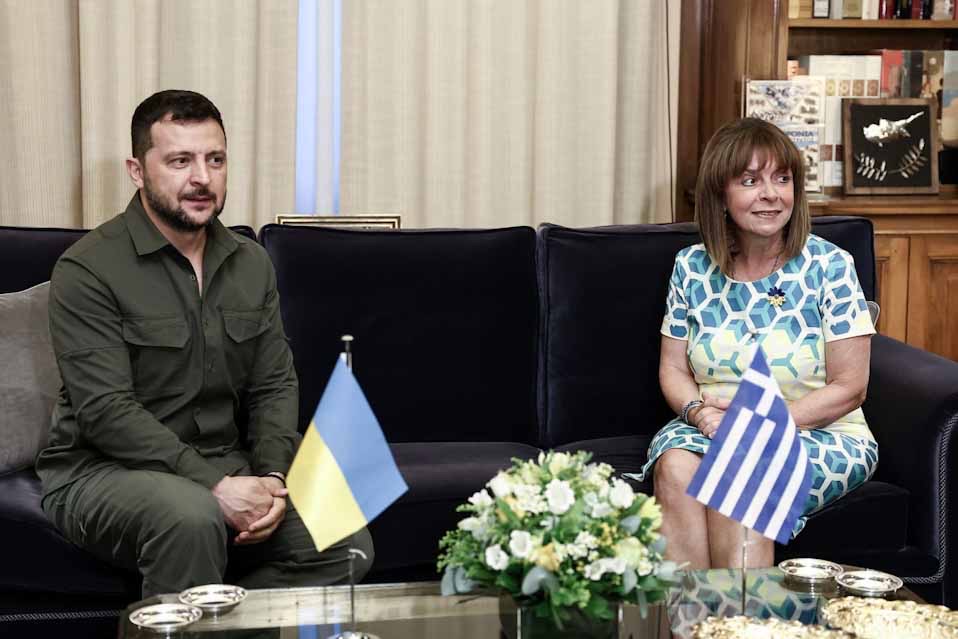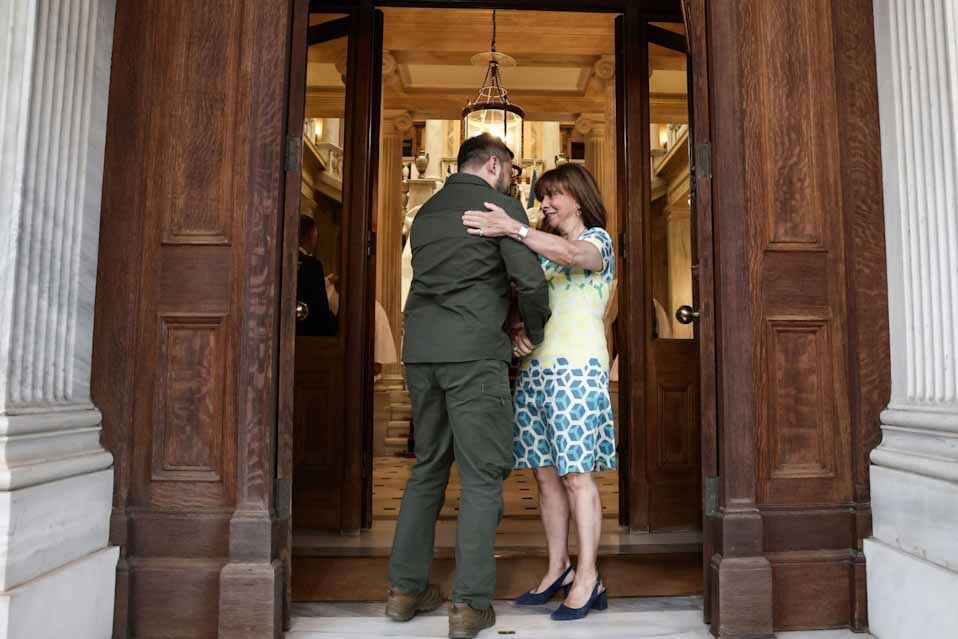 Κύριε Πρόεδρε, με ιδιαίτερη χαρά, σας καλωσορίζω στην Αθήνα και στο Προεδρικό Μέγαρο. Όταν τον περασμένο Νοέμβριο επισκέφθηκα το Κίεβο είχα την ευκαιρία να τονίσω, και θα το επαναλάβω και σήμερα, ότι η Ελλάδα στέκεται και θα συνεχίσει να στέκεται σταθερά στο πλευρό του γενναίου ουκρανικού λαού, που αγωνίζεται για την ανεξαρτησία και την κυριαρχία της χώρας σας, απέναντι στον απρόκλητο και παράνομο επιθετικό πόλεμο της Ρωσίας. Είχα επίσης την ευκαιρία, επισκεπτόμενη τις πόλεις κοντά στο Κίεβο, το Ιρπίν, την Μποροντιάνκα, την Μπούτσα, να διαπιστώσω με τα ίδια μου τα μάτια τις καταστροφικές συνέπειες της ρωσικής εισβολής, αλλά και τη γενναιότητα του ουκρανικού λαού.