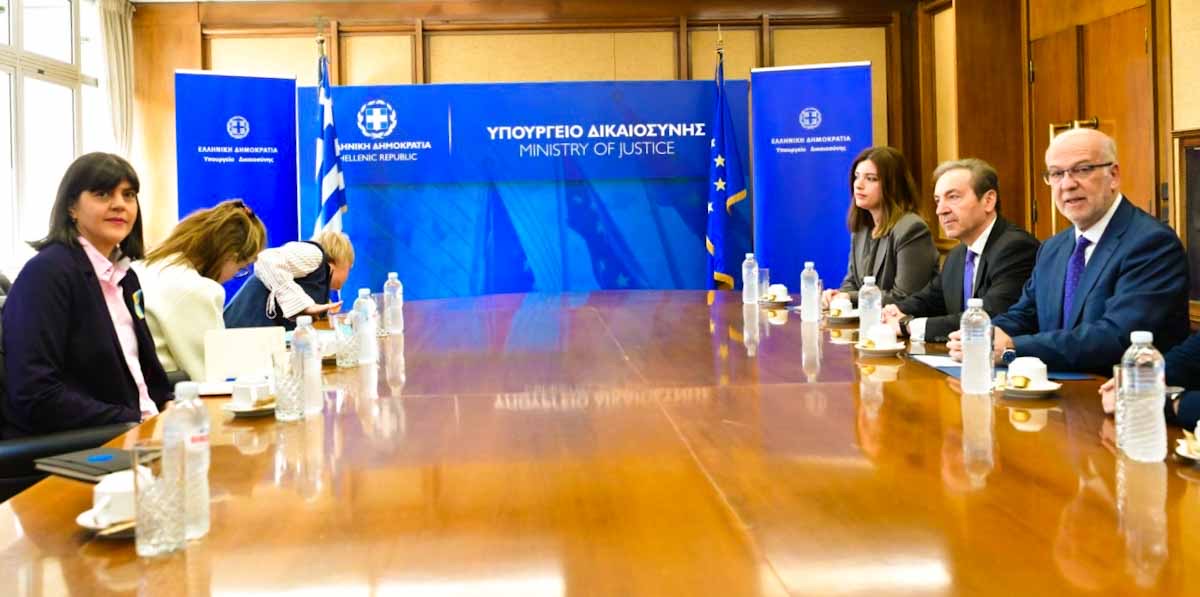 Ο Υπουργός Δικαιοσύνης, κ. Γιώργος Φλωρίδης και ο Υφυπουργός Δικαιοσύνης, κ. Ιωάννης Μπούγας συναντήθηκαν σήμερα με την Ευρωπαία Γενική Εισαγγελέα, κ. Laura Codruta Kövesi, τον επικεφαλής του Εκτελεστικού Γραφείου της Ευρωπαϊκής Εισαγγελίας, κ. Milan Jaron και την Αντεισαγγελέα του Αρείου Πάγου, κ. Ελένη Καρκαμπούνα, επικεφαλής του Γραφείου των ευρωπαίων εντεταλμένων εισαγγελέων στην Αθήνα.