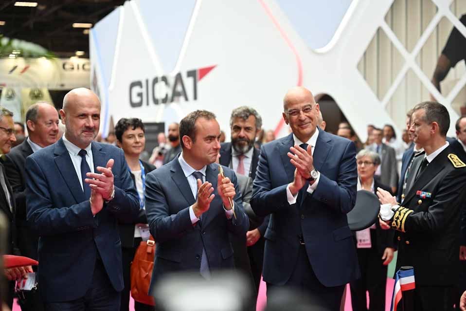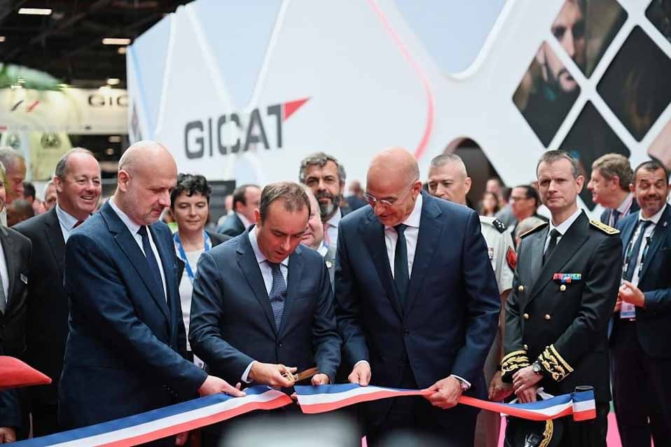 Ο Υπουργός Εθνικής Άμυνας Νίκος Δένδιας παρέστη σήμερα, Δευτέρα 17 Ιουνίου 2024, στα εγκαίνια της Διεθνούς Έκθεσης Άμυνας και Ασφάλειας «Eurosatory 2024», που πραγματοποιείται στο Παρίσι. Κατά την τελετή, ο Έλληνας Υπουργός έκοψε από κοινού την κορδέλα των εγκαινίων της έκθεσης με τον Υπουργό Άμυνας της Γαλλίας Sébastien Lecornu, κατόπιν πρόσκλησης του ομολόγου του.
