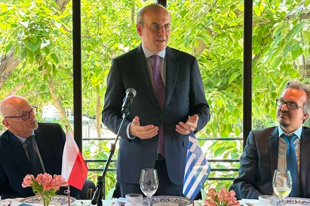 Όπως σημειώνει σε σχετική ανάρτησή του στα μέσα κοινωνικής δικτύωσης ο αντιπρόεδρος της κυβέρνησης, «η Ελλάδα επιστρέφει δυναμικά και είναι πια ελκυστική για επενδύσεις! Με πρωτοβουλία της πρεσβείας της Πολωνίας και του πρέσβη κ. Βόιτσιεχ Πονικιέφσκι, είχα σήμερα την ευκαιρία να παρουσιάσω στους πρέσβεις των όλων των κρατών-μελών της ΕΕ (και επιπλέον της Νορβηγίας και της Ελβετίας) τη νέα εικόνα της ελληνικής οικονομίας και τις βασικές προτεραιότητες της κυβέρνησης από εδώ και πέρα».