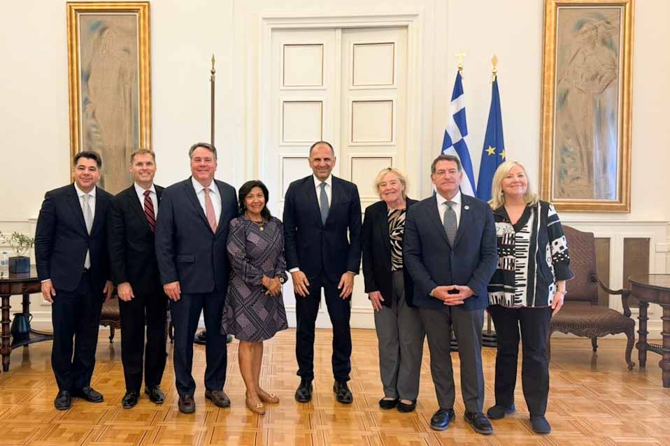 Θέματα διμερούς και διεθνούς ενδιαφέροντος τέθηκαν στο επίκεντρο συνάντησης που είχε σήμερα εξαμελής διακομματική αντιπροσωπεία του αμερικανικού Κογκρέσου με τον υπουργό Εξωτερικών, Γιώργο Γεραπετρίτη.