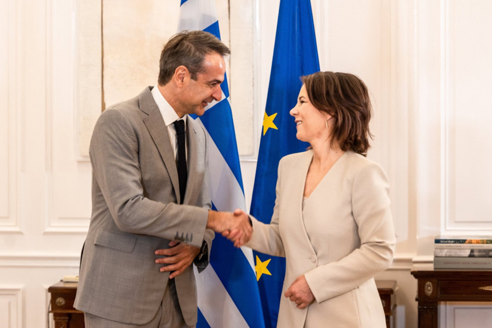 Ο Πρωθυπουργός Κυριάκος Μητσοτάκης συναντήθηκε σήμερα στο Μέγαρο Μαξίμου με την Υπουργό Εξωτερικών της Ομοσπονδιακής Δημοκρατίας της Γερμανίας Annalena Baerbock.