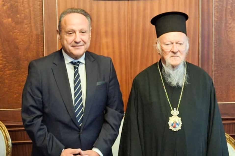 Από τον Οικουμενικό Πατριάρχη κ.κ. Βαρθολομαίο έγινε δεκτός σήμερα, στο Φανάρι, ο δήμαρχος Θεσσαλονίκης Στέλιος Αγγελούδης, ο οποίος πραγματοποιεί επίσκεψη στην Κωνσταντινούπολη. Η συνάντηση των δύο ανδρών διεξήχθη σε εγκάρδιο κλίμα, όπως αναφέρει σε δήλωσή του ο δήμαρχος Θεσσαλονίκης, τονίζοντας ότι ήταν τιμή του να συναντηθεί με τον Οικουμενικό Πατριάρχη και επισημαίνοντας τον εξέχοντα ρόλο του Πατριαρχείου για την Ορθοδοξία.