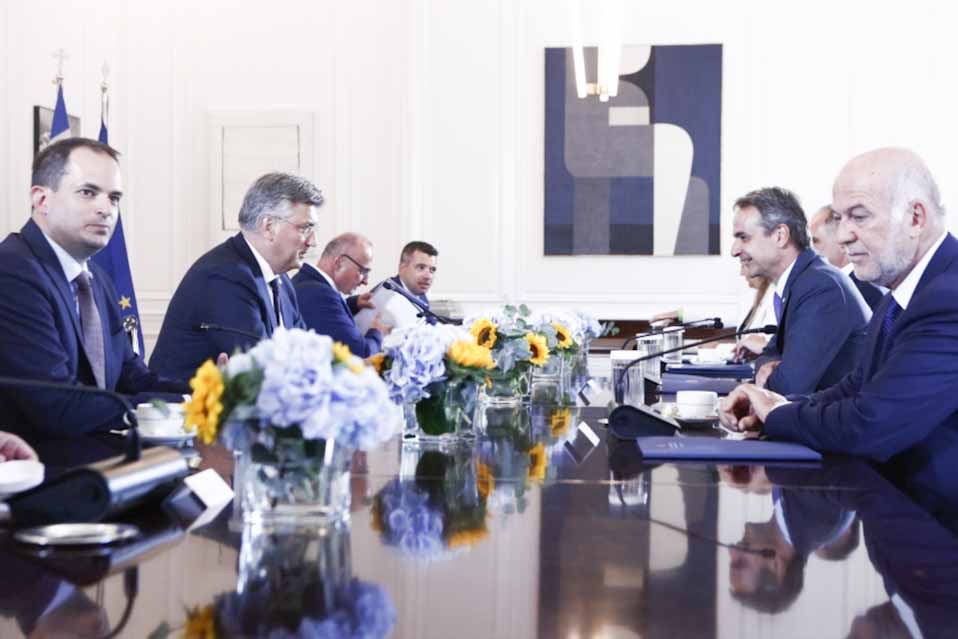 Ο Πρωθυπουργός Κυριάκος Μητσοτάκης συναντήθηκε στο Μέγαρο Μαξίμου με τον Πρωθυπουργό της Κροατίας Andrej Plenkovic.