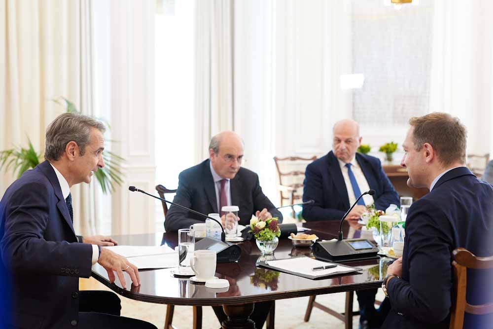 Στη συνάντηση συμμετείχαν επίσης ο Αντιπρόεδρος της Κυβέρνησης Κωστής Χατζηδάκης και ο Υπουργός Αγροτικής Ανάπτυξης και Τροφίμων Κώστας Τσιάρας.