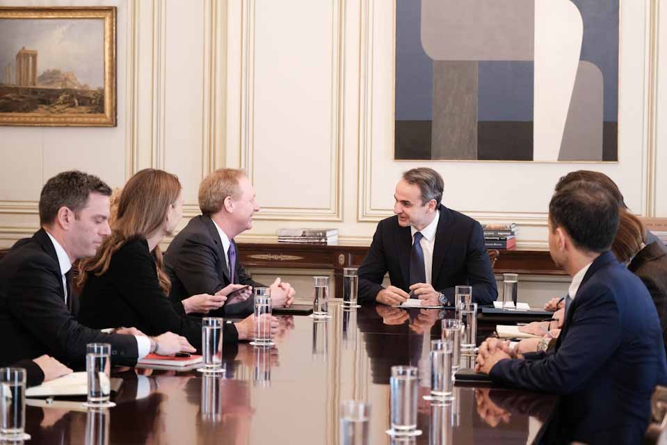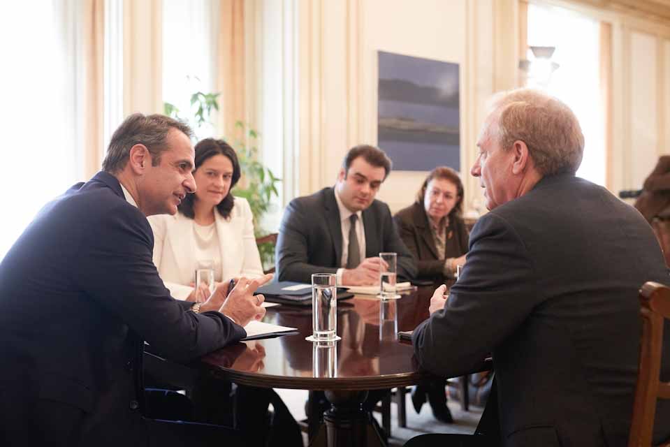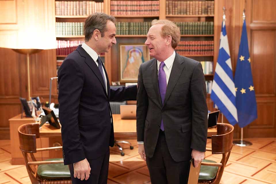 Ο Πρωθυπουργός Κυριάκος Μητσοτάκης συναντήθηκε σήμερα στο Μέγαρο Μαξίμου με τον Πρόεδρο της Microsoft Brad Smith.