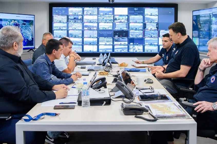 Ο Υπουργός Κλιματικής Κρίσης και Πολιτικής Προστασίας, Βασίλης Κικίλιας πραγματοποίησε σήμερα το απόγευμα συνάντηση με το ΔΣ της Πανελλήνιας Ομοσπονδίας Εθελοντικών Οργανώσεων Δασοπροστασίας- Πυρόσβεσης, παρουσία του Υφυπουργού ΚΚΠΠ, Ευάγγελου Τουρνά, του Γ.Γ Πολιτικής Προστασίας, Βασίλη Παπαγεωργίου και του Αρχηγού του Πυροσβεστικού Σώματος, Θεόδωρου Βάγια.
