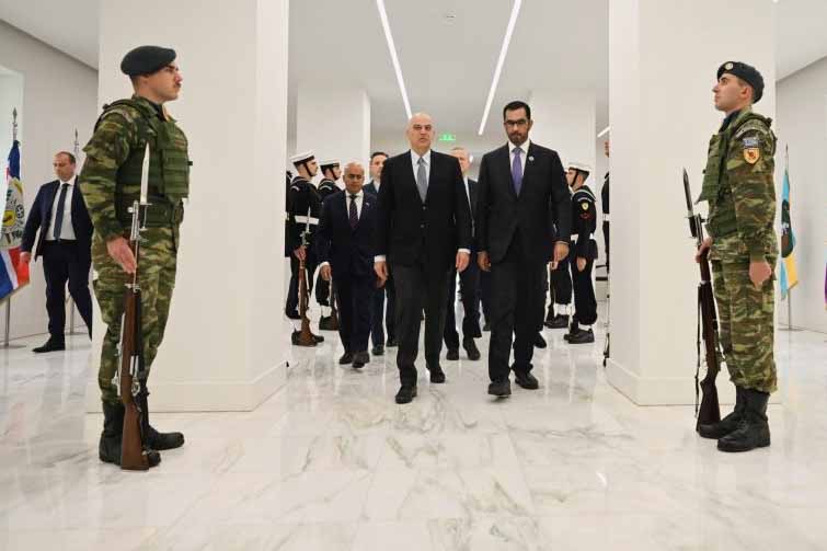 Ο Υπουργός Εθνικής Άμυνας, Νίκος Δένδιας, υποδέχθηκε σήμερα, Παρασκευή 2 Μαΐου 2025, στο Υπουργείο Εθνικής Άμυνας, συνοδευόμενος από τον Υφυπουργό Εθνικής Άμυνας, Θανάση Δαβάκη, τον Υπουργό Βιομηχανίας και Προηγμένης Τεχνολογίας των Ηνωμένων Αραβικών Εμιράτων, Δρ Sultan Bin Ahmed Al Jaber.