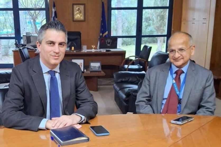 Ο Υπουργός Υποδομών και Μεταφορών Χρίστος Δήμας συναντήθηκε, σήμερα, με τον Πρέσβη της Ινδίας στην Ελλάδα, Rudrendra Tandon, στον απόηχο της επίσκεψης του Έλληνα Πρωθυπουργού στην Ινδία και συμφώνησαν να χαρτογραφήσουν τα βήματα για την εμβάθυνση των διμερών μας σχέσεων, στο πλαίσιο και του IMEEC (India-Middle East-Europe Economic Corridor).