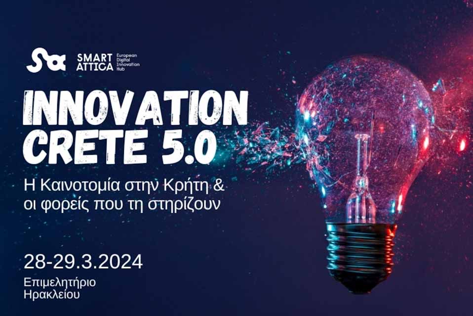 Δύο μεγάλες διοργανώσεις για την Καινοτομία, υπό την Αιγίδα της Περιφέρειας Κρήτης, θα διεξαχθούν την Πέμπτη 28 και την Παρασκευή 29 Μαρτίου 2024, στο Ηράκλειο Κρήτης, στο Επιμελητήριο Ηρακλείου και στο Ίδρυμα Τεχνολογίας και Έρευνας (ΙΤΕ).