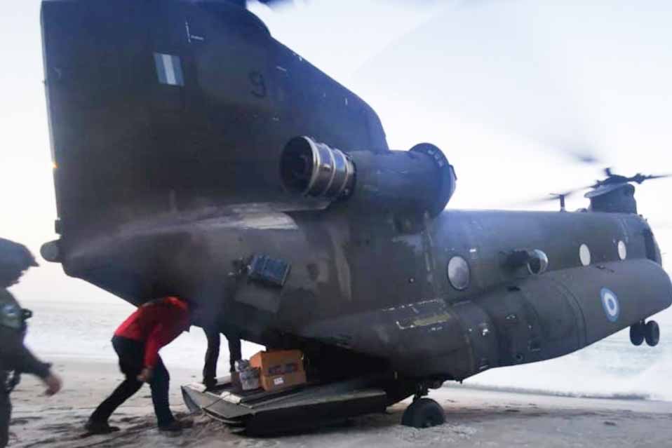 Ταυτόχρονα, τα εναέρια και επίγεια μέσα καθώς και Σ.μη.Ε.Α. του Π.Σ. μεταφέρουν τρόφιμα, νερό, φάρμακα και είδη κλινοστρωμνής, σε πληγέντες των περιοχών της Περιφέρειας Θεσσαλίας.