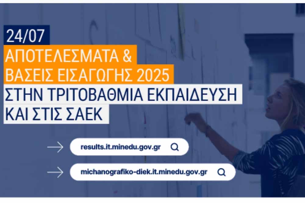 Από το Υπουργείο Παιδείας, Θρησκευμάτων και Αθλητισμού ανακοινώνονται τα αποτελέσματα για την εισαγωγή υποψηφίων στην Τριτοβάθμια Εκπαίδευση, μέσω πανελλαδικών εξετάσεων ΓΕΛ – ΕΠΑΛ και μέσω της ειδικής κατηγορίας υποψηφίων με σοβαρές παθήσεις καθώς και τα αποτελέσματα για την εισαγωγή υποψηφίων στις δημόσιες ΣΑΕΚ, μέσω του παράλληλου μηχανογραφικού δελτίου και δίνονται επιπλέον πληροφορίες για τις διαδικασίες επιλογής τους.