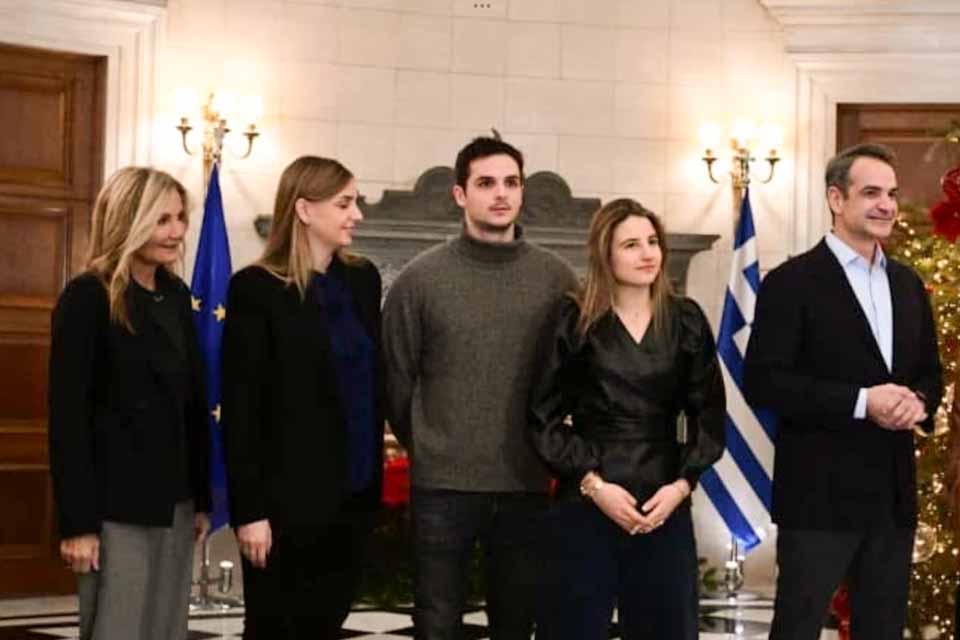 Χριστουγεννιάτικα κάλαντα από διάφορες περιοχές της χώρας άκουσαν στο Μέγαρο Μαξίμου ο Πρωθυπουργός Κυριάκος Μητσοτάκης, η σύζυγός του Μαρέβα Γκραμπόφσκι-Μητσοτάκη και τα παιδιά τους Σοφία, Κωνσταντίνος και Δάφνη.