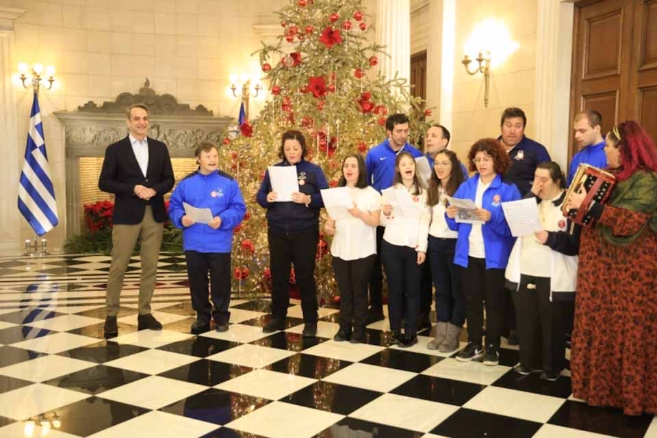 Κάλαντα της Πρωτοχρονιάς από αθλητές των Special Olympics Hellas και την Πανθρακική Ομοσπονδία Νότιας Ελλάδας άκουσε ο Πρωθυπουργός Κυριάκος Μητσοτάκης, στο Μέγαρο Μαξίμου.