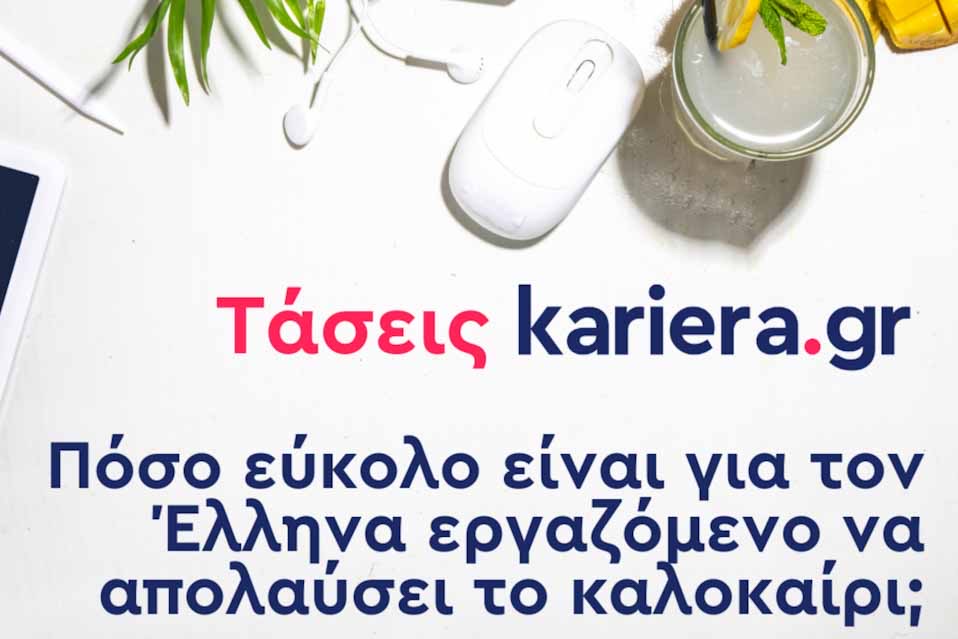 18.07.2024 – Κάποιοι Έλληνες εργαζόμενοι έχουν ήδη ξεκινήσει να απολαμβάνουν τις καλοκαιρινές τους διακοπές, ενώ κάποιοι άλλοι μετρούν αντίστροφα μέχρι να φύγουν από το γραφείο. Το kariera.gr πραγματοποίησε έρευνα για τις καλοκαιρινές άδειες και τις τάσεις που παρατηρούνται στους εργαζόμενους σχετικά με τις άδειες, την ευελιξία στην εργασία κατά τη διάρκεια του καλοκαιριού και την δυνατότητα να απολαύσουν τις διακοπές τους χωρίς ενοχλήσεις από το γραφείο.
