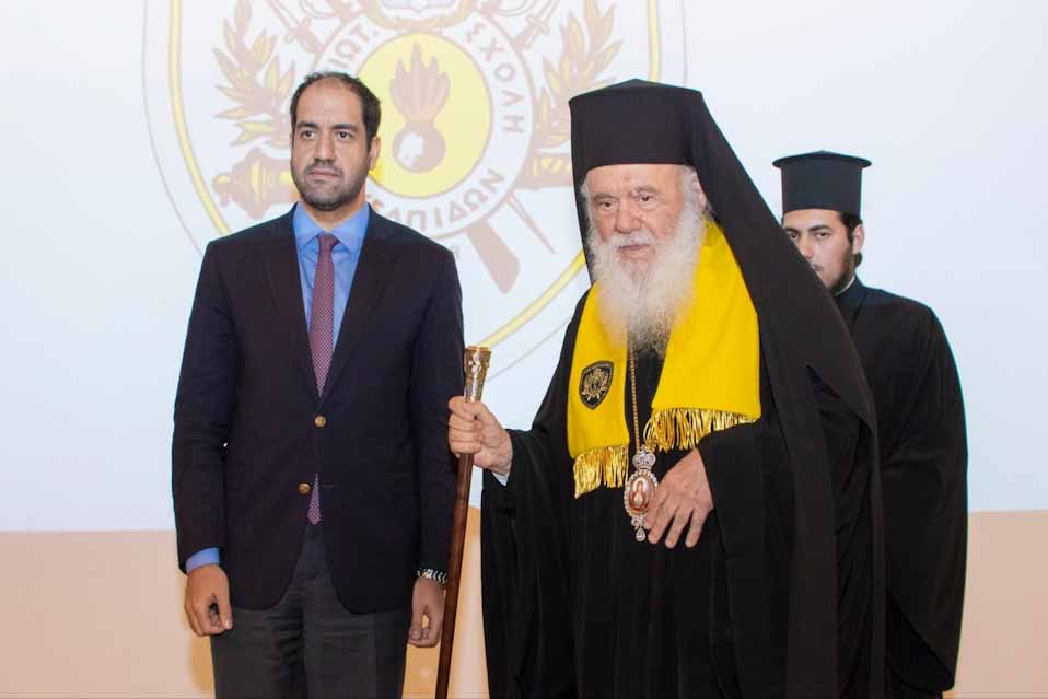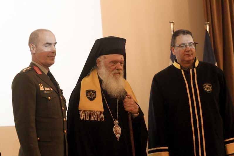 Σήμερα, Δευτέρα 26 Φεβρουαρίου 2024, παρουσία του Υφυπουργού Εθνικής Άμυνας κ. Ιωάννη Κεφαλογιάννη και του Αρχηγού του Γενικού Επιτελείου Στρατού Αντιστράτηγου Γεώργιου Κωστίδη, πραγματοποιήθηκε στην Στρατιωτική Σχολή Ευελπίδων (ΣΣΕ) στη Βάρη Αττικής, η τελετή αναγόρευσης σε επίτιμο Διδάκτορα της ΣΣΕ του Μακαριώτατου Αρχιεπισκόπου Αθηνών και Πάσης Ελλάδος κ.κ. Ιερώνυμου.