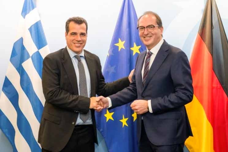 Ο Υπουργός Μετανάστευσης και Ασύλου, Θάνος Πλεύρης, πραγματοποίησε επίσκεψη στο Βερολίνο, όπου συναντήθηκε με τον Γερμανό ομόλογό του, κ. Alexander Dobrindt. Κατά τη διάρκεια της διμερούς συνάντησης, οι δύο Υπουργοί συζήτησαν σειρά θεμάτων κοινού ενδιαφέροντος που αφορούν στη διαχείριση της παράνομης μετανάστευσης, καθώς και στις ευρωπαϊκές πρωτοβουλίες για τη θωράκιση των εξωτερικών συνόρων.
