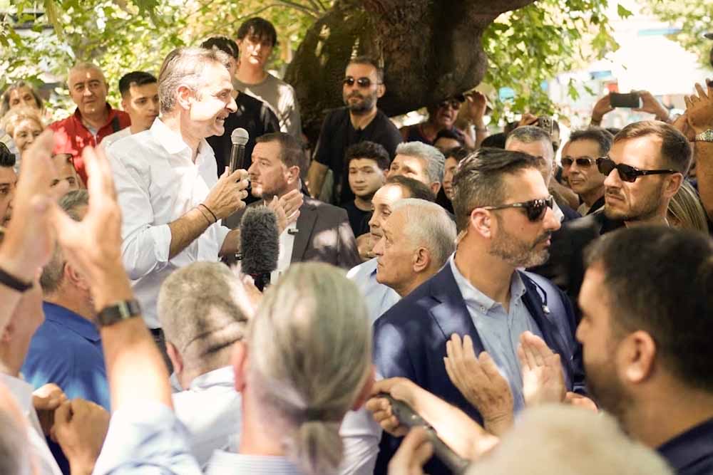 Ο κ. Μητσοτάκης συνομίλησε με πολίτες σε καφέ και ευχαρίστησε τους συγκεντρωμένους για την υποδοχή, σχολιάζοντας: «Μου θυμίζει λίγο προεκλογικό κλίμα, αλλά οι εκλογές θα γίνουν σε δύο χρόνια και θα τις κερδίσουμε και αυτές».