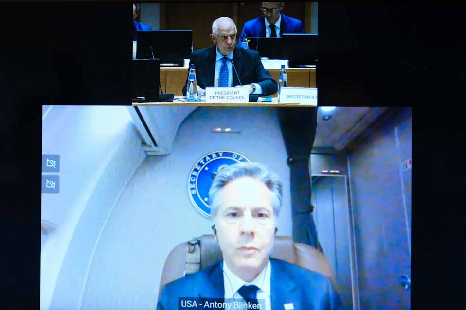 Πριν από λίγο ολοκληρώθηκε η τηλεδιάσκεψη των υπουργών Εξωτερικών της ΕΕ με τον αμερικανό υπουργό Εξωτερικών ‘Αντονι Μπλίνκεν, στο πλαίσιο του Συμβουλίου Εξωτερικών Υποθέσεων. Σύμφωνα με διπλωματικές πηγές, κατά την παρέμβασή του, ο υπουργός Εξωτερικών, Γιώργος Γεραπετρίτης, αναφέρθηκε στην ανησυχητική κατάσταση στην Ερυθρά Θάλασσα, αναδεικνύοντας τη συνεισφορά της Ελλάδας στην προώθηση της ασφάλειας της διεθνούς ναυσιπλοΐας.