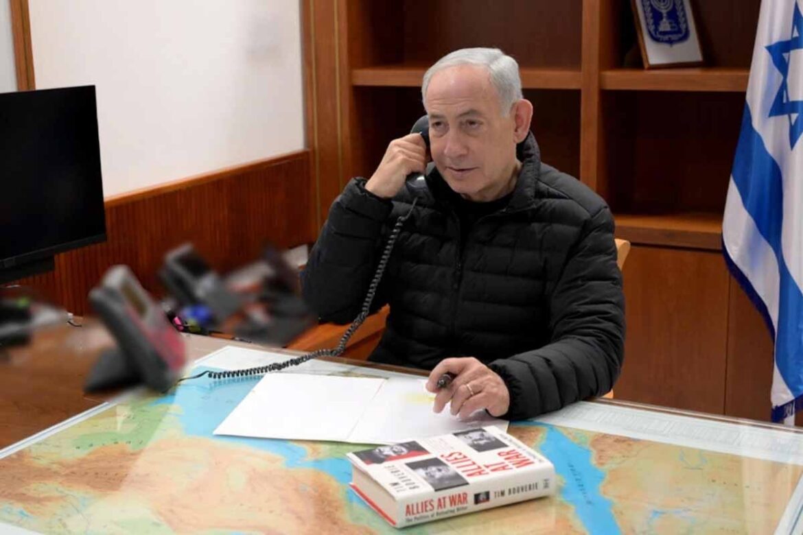 Όπως επισημαίνουν οι Times of Israel, στο γραφείο του Νετανιάχου διακρίνεται το βιβλίο «Allies at War: How the Struggles Between the Allied Powers Shaped the War and the World» («Σύμμαχοι σε πόλεμο: Πώς οι διαμάχες μεταξύ των συμμαχικών δυνάμεων διαμόρφωσαν τον πόλεμο και τον κόσμο»), μια πολιτική ιστορία του Β’ Παγκοσμίου Πολέμου του Τιμ Μπούβαρι κι ένας χάρτης της Μέσης Ανατολής.