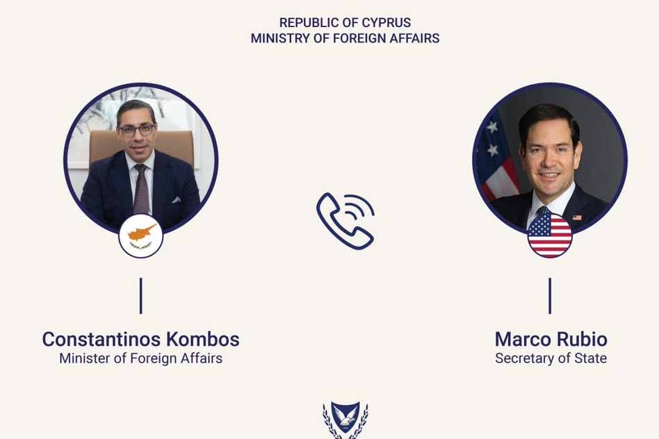 Τηλεφωνική επικοινωνία είχε σήμερα ο Υπουργός Εξωτερικών της Κύπρου, Κωνσταντίνος Κόμπος και ο Υπουργός Εξωτερικών των ΗΠΑ Μάρκο Ρούμπιο.
