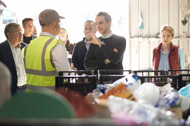 Ο Πρωθυπουργός Κυριάκος Μητσοτάκης επισκέφθηκε το απόγευμα στο Κέντρο Κυκλικής Καινοτομίας της Τήλου, όπου γίνεται η διαχείριση των αποβλήτων στο πλαίσιο του πιλοτικού προγράμματος κυκλικής οικονομίας Just Go Zero Tilos.