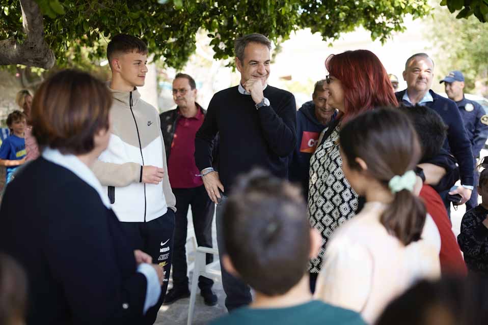 Νωρίτερα, ο Κυριάκος Μητσοτάκης επισκέφθηκε τον οικισμό Μεγάλο Χωριό, όπου είχε την ευκαιρία να συναντήσει κατοίκους στην κεντρική πλατεία και να συνομιλήσει μαζί τους.