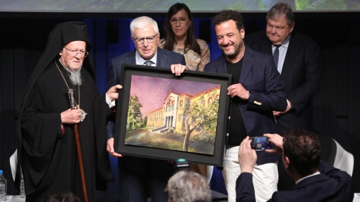 Στο τέλος της εκδήλωσης ο Οικουμενικός Πατριάρχης δέχθηκε ως δώρο έργο του ζωγράφου Ανδρέα Γεωργιάδη, την Ιερά Θεολογική Σχολή της Χάλκης 2025, με μελάνι σε χειροποίητο χαρτί, για το οποίο δήλωσε ευγνώμων και συγκινημένος ανέφερε ότι η Σχολή αναμένεται να επαναλειτουργήσει τον Σεπτέμβριο του 2026.