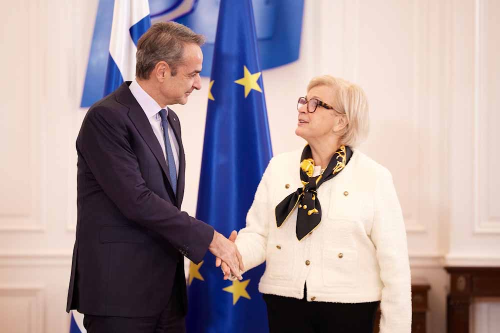 O Πρωθυπουργός Κυριάκος Μητσοτάκης συναντήθηκε στο Μέγαρο Μαξίμου με την Υπουργό Ενόπλων Δυνάμεων της Γαλλίας Catherine Vautrin.