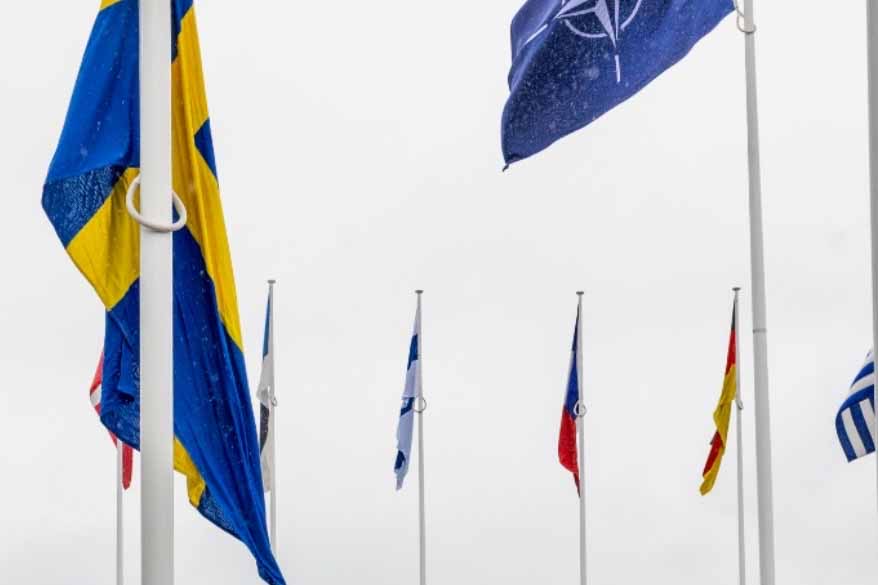 Η Σουηδία, το 32ο μέλος της Συμμαχίας, υψώθηκε η σημαία της χώρας στην έδρα του ΝΑΤΟ στις Βρυξέλλες.