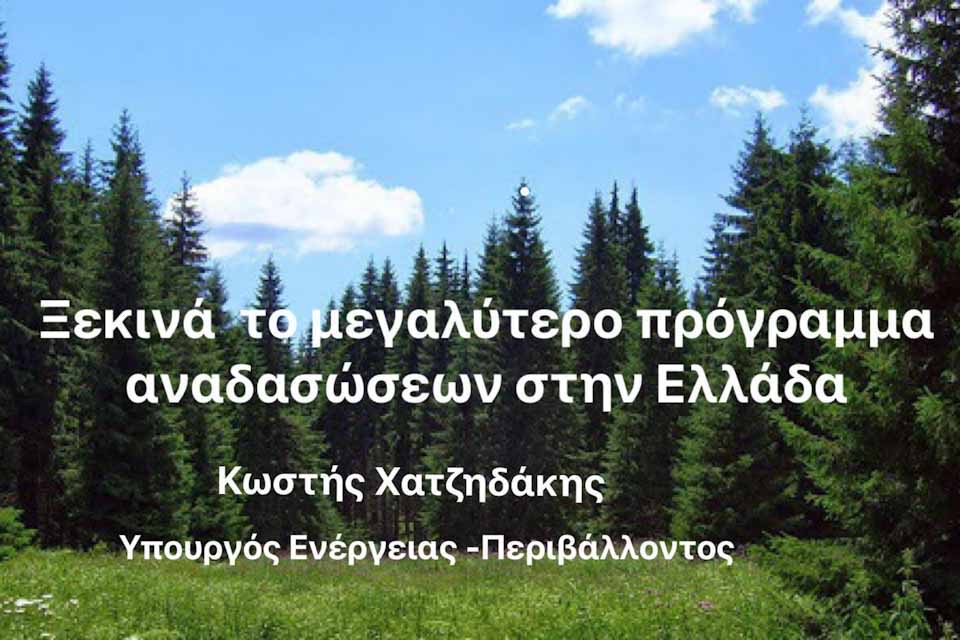 Ο Κωστής Χατζηδάκης για το Εθνικό Σχέδιο Αναδασώσεων δήλωσε:
