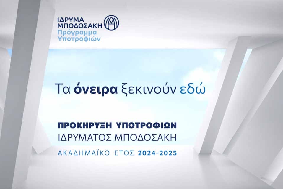 Οι προκηρύξεις των Προγραμμάτων Υποτροφιών, ακαδ. έτους 2024-2025, είναι διαθέσιμες στην ιστοσελίδα του Ιδρύματος Μποδοσάκη μαζί με το πλήρες υποστηρικτικό υλικό.