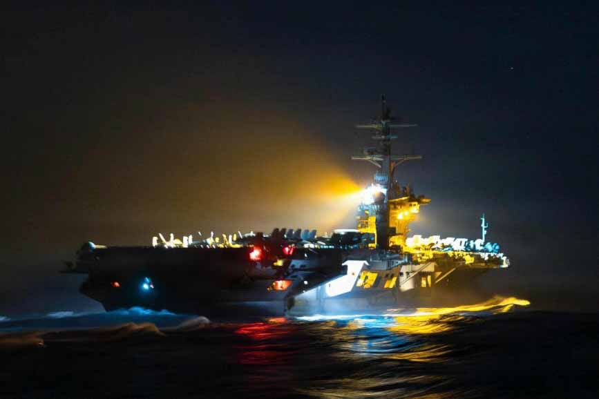 Ο αρχηγός του ιρανικού ναυτικού, Σαχράμ Ιρανί, ανέφερε ότι το USS Abraham Lincoln θα αποτελέσει στόχο εάν εισέλθει σε εμβέλεια, υπογραμμίζοντας ότι η Ισλαμική Δημοκρατία θα «εκδικηθεί» για τη βύθιση της ιρανικής φρεγάτας Dena στις 4 Μαρτίου. Η Τεχεράνη παρουσιάζει τις κινήσεις της ως απάντηση σε αμερικανική επιθετικότητα και δηλώνει αποφασισμένη να υπερασπιστεί τα χωρικά της ύδατα.