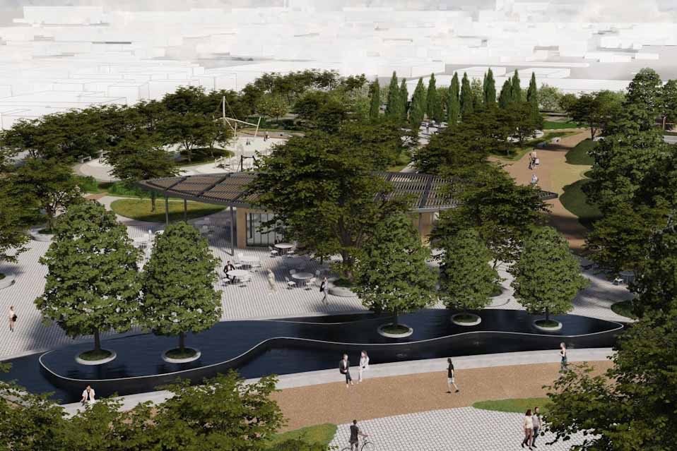 Στον πυρήνα του σχεδίου βρίσκεται η δημιουργία του μεγαλύτερου αστικού πάρκου που έχει δημιουργηθεί στην Αθήνα τα τελευταία περίπου εκατό χρόνια. Πρόκειται για 215 στρέμματα πρασίνου σε μία συνολική έκταση 260 στρεμμάτων. Για να γίνει αντιληπτό το μέγεθος του πάρκου, σημειώνεται ότι το Πεδίον του ‘Αρεως που είχε διαμορφωθεί το 1934, είναι έκτασης 277 στρεμμάτων (μαζί με τον Λόφο Φινόπουλου).