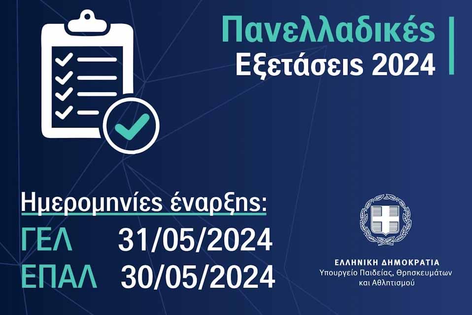Από το Υπουργείο Παιδείας, Θρησκευμάτων και Αθλητισμού ανακοινώνεται το πλήρες πρόγραμμα των πανελλαδικών εξετάσεων έτους 2024.