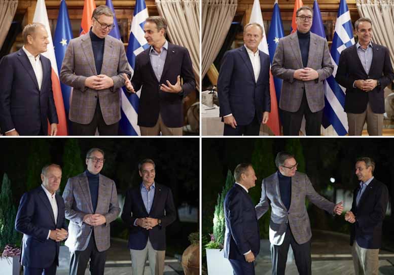 O Πρωθυπουργός Κυριάκος Μητσοτάκης βρέθηκε την Τετάρτη 23/10 στο Βελιγράδι, όπου παρακάθησε, μαζί με τον Πρωθυπουργό της Πολωνίας Donald Tusk, σε δείπνο που παρέθεσε προς τιμήν τους ο Πρόεδρος της Σερβίας Aleksandar Vučić.