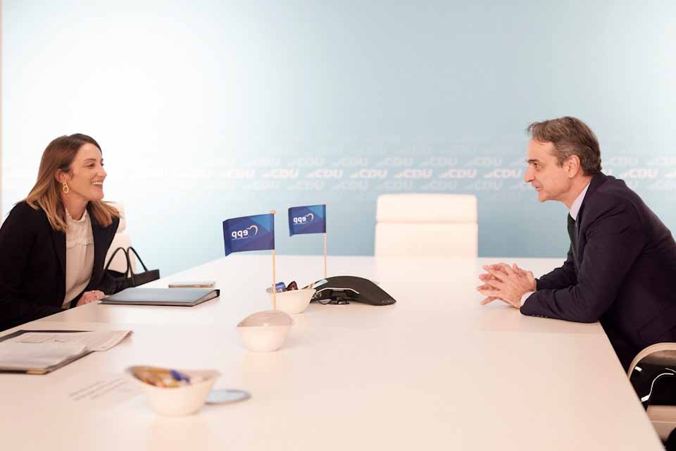 Συνάντηση με την πρόεδρο του Ευρωπαϊκού Κοινοβουλίου Ρομπέρτα Μέτσολα είχε την Παρασκευή, ο πρωθυπουργός Κυριάκος Μητσοτάκης, στο περιθώριο της συνόδου των ηγετών του Ευρωπαϊκού Λαϊκού Κόμματος, η οποία πραγματοποιείται στο Βερολίνο.