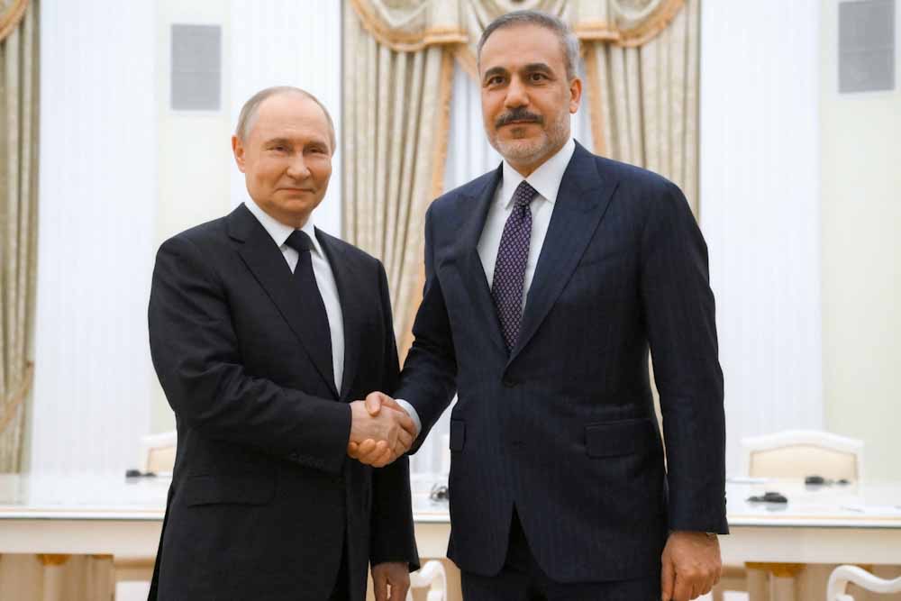 Στη συνάντησή τους Πούτιν και Φιντάν αναφέρθηκαν «στις πρωτοβουλίες που έγιναν πρόσφατα για τον τερματισμό του πολέμου μεταξύ Ουκρανίας και Ρωσίας (και) τις εξελίξεις μετά τις διαπραγματεύσεις στην Κωνσταντινούπολη», δήλωσε η τουρκική πηγή.