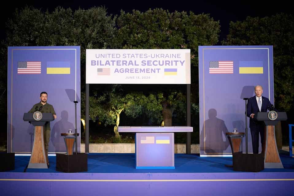 «Σήμερα είναι μια πραγματικά ιστορική ημέρα», τόνισε ο Ουκρανός πρόεδρος Βολοντίμιρ Ζελένσκι αναφερόμενος στη διμερή συμφωνία για την ασφάλεια μεταξύ ΗΠΑ και Ουκρανίας, η οποία υπεγράφη σήμερα στο περιθώριο των εργασιών της συνόδου κορυφής της Ομάδας των Επτά (G7) στην Ιταλία.
