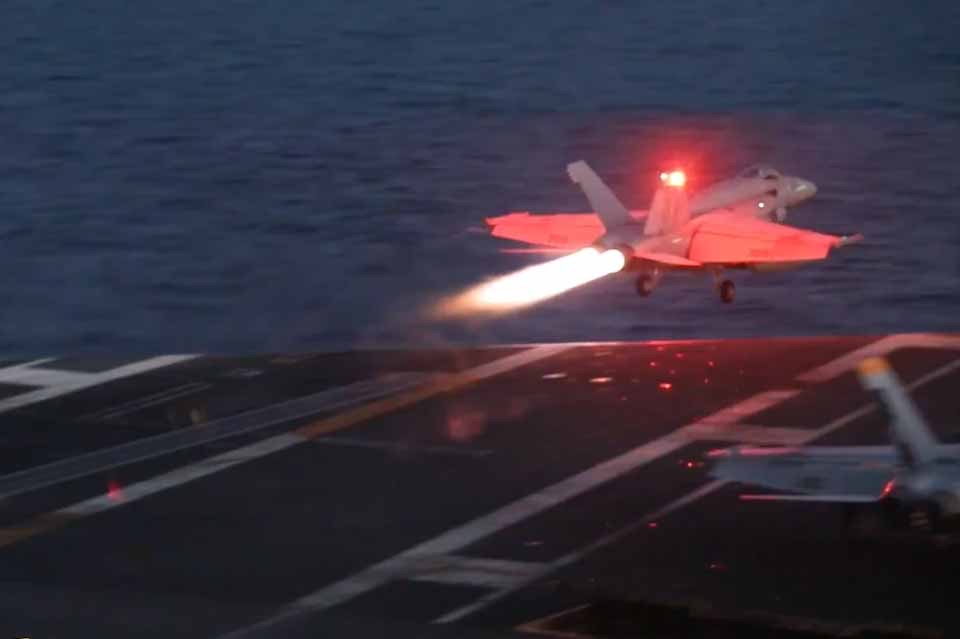 Στο οπτικό υλικό αυτό εικονίζεται επίσης η στιγμή ενός από τα πλήγματα, με σφαίρα φωτιάς να φωτίζει τομέα όπου είναι αγκυροβολημένα πλοία.