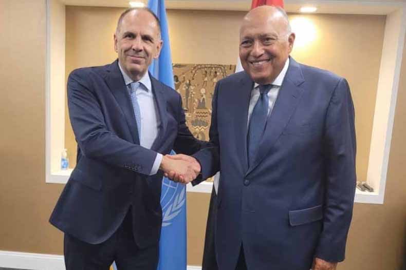 Η βούληση για διεύρυνση της στρατηγικής συνεργασίας μεταξύ Ελλάδας και Αιγύπτου εκφράστηκε τόσο στην κατ’ ιδίαν συνάντηση του υπουργού Εξωτερικών Γιώργου Γεραπετρίτη με τον Αιγύπτιο ομόλογό του Σάμεχ Σούκρι όσο και στην τριμερή με τη συμμετοχή του Κύπριου υπουργού Εξωτερικών Κωνσταντίνου Κόμπου, στο πλαίσιο της 78ης Συνόδου Γενικής Συνέλευσης του ΟΗΕ, στη Νέα Υόρκη.