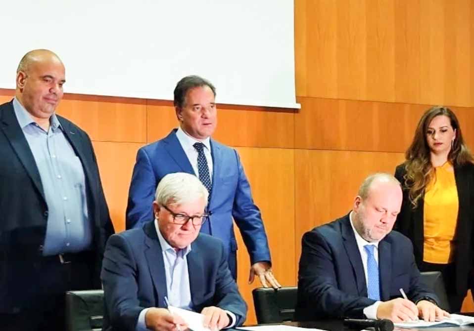 Ο Υπουργός Εργασίας και Κοινωνικής Ασφάλισης κ. Άδωνις Γεωργιάδης παρέστη σήμερα, Τετάρτη 6 Δεκεμβρίου 2023, στην υπογραφή σύμβασης για την ολοκλήρωση της κατασκευής του οικισμού 80 εργατικών κατοικιών στην Κυρακαλή Γρεβενών μεταξύ του Διοικητή της ΔΥΠΑ κ. Σπύρου Πρωτοψάλτη και εκπροσώπου της αναδόχου εργολαβικής εταιρίας.