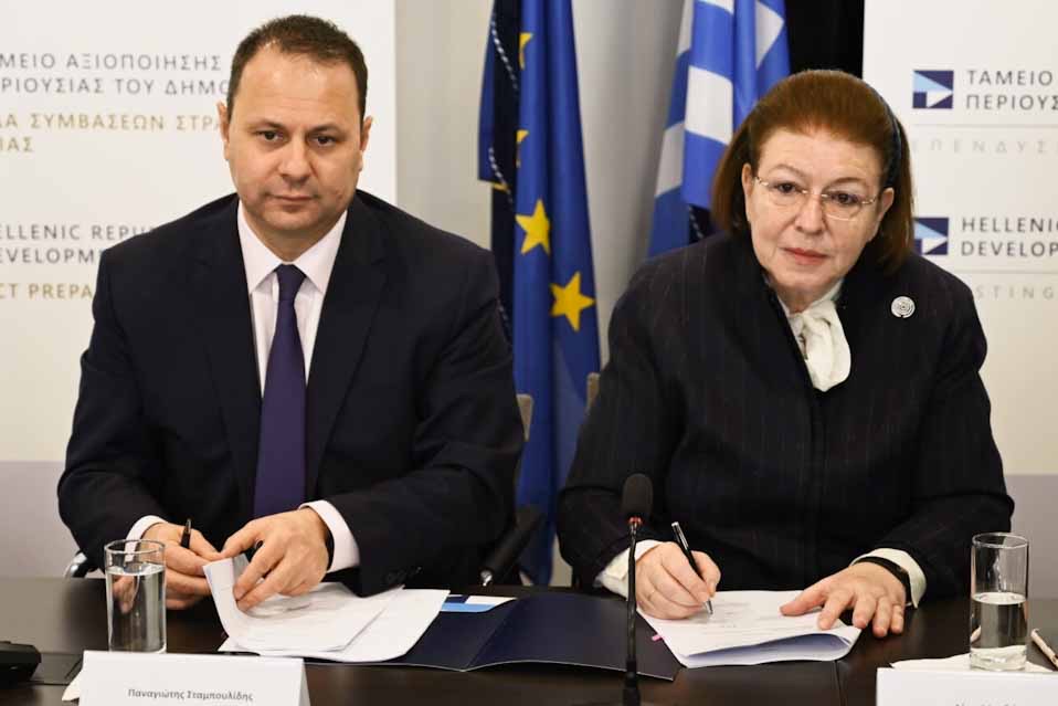 Υπέγραψαν σήμερα η υπουργός Πολιτισμού Λίνα Μενδώνη και ο Εντεταλμένος Σύμβουλος και Επικεφαλής της Μονάδας Συμβάσεων Στρατηγικής Σημασίας του ΤΑΙΠΕΔ Παναγιώτης Σταμπουλίδης, τη σύμβαση για την ωρίμανση και τη διενέργεια της διαγωνιστικής διαδικασίας για την αποκατάσταση των χώρων και των κτηρίων εστίασης και φιλοξενίας εντός του π. βασιλικού κτήματος στο Τατόι, παρουσία του Διευθύνοντος Συμβούλου του ΤΑΙΠΕΔ, Δημήτρη Πολίτη και του Διευθύνοντος Συμβούλου και Εκτελεστικού Μέλους ΔΣ Υπερταμείου (ΕΕΣΥΠ), Γρηγόρη Δ. Δημητριάδη.