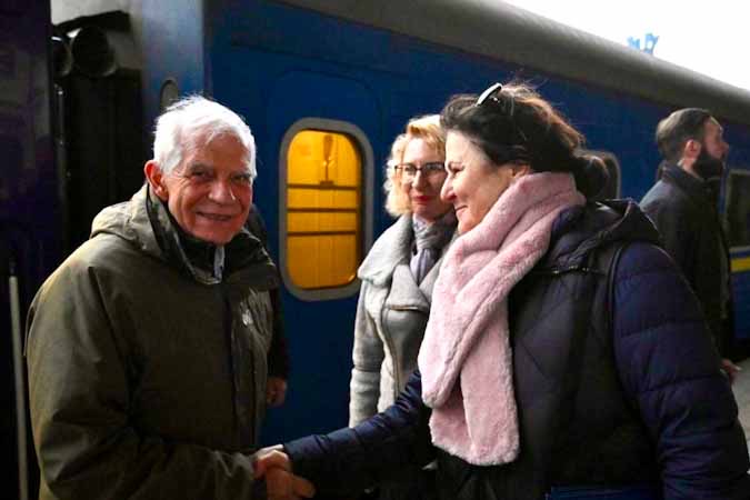 «Ο ξεκάθαρος στόχος αυτής της επίσκεψης είναι να εκφράσουμε την υποστήριξη της Ευρωπαϊκής Ένωσης στην Ουκρανία – η υποστήριξη αυτή παραμένει αμέριστη», δήλωσε στους δημοσιογράφους ο Μπορέλ, η θητεία του οποίου λήγει τον ερχόμενο μήνα.